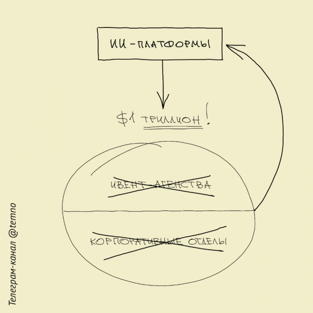 2. И этот кусок не только «сладкий», но и «большой»! Ведь размер рынка корпоративных мероприятий скоро приблизится к 1 триллиону долларов 💰 А самое главное, что этот рынок у старых игроков типа ивент-агентств и корпоративных отделов начинают отжирать новые ИИ-платформы 🚀