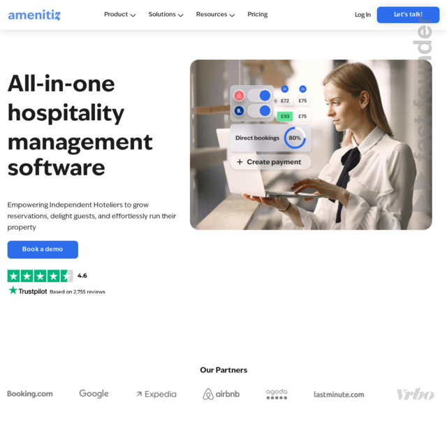 “Simplify operations and increase direct bookings with Amenitiz, the easy-to-use hospitality management system for hoteliers, B&Bs owners and Property Managers.”