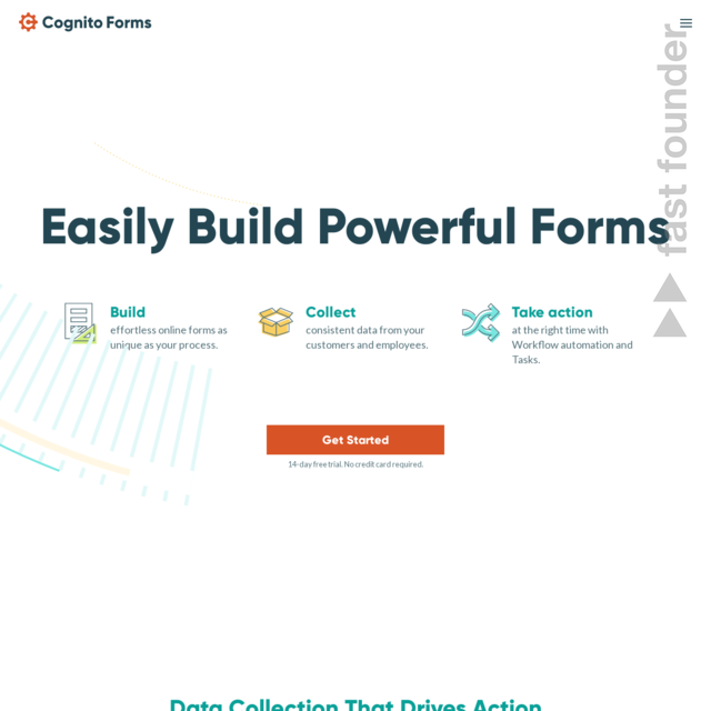 “With Cognito Forms, you can build powerful online forms, collect data, and automate your business workflow - docs, file uploads, signatures, and approvals.”