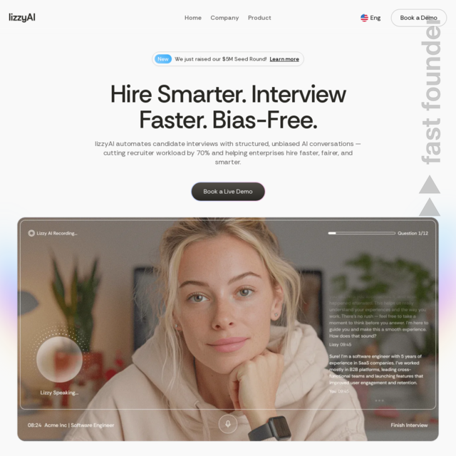 “Lizzy AI automates candidate interviews with structured, unbiased AI conversations — cutting recruiter workload by 70% and helping enterprises hire faster, fairer, and smarter.”