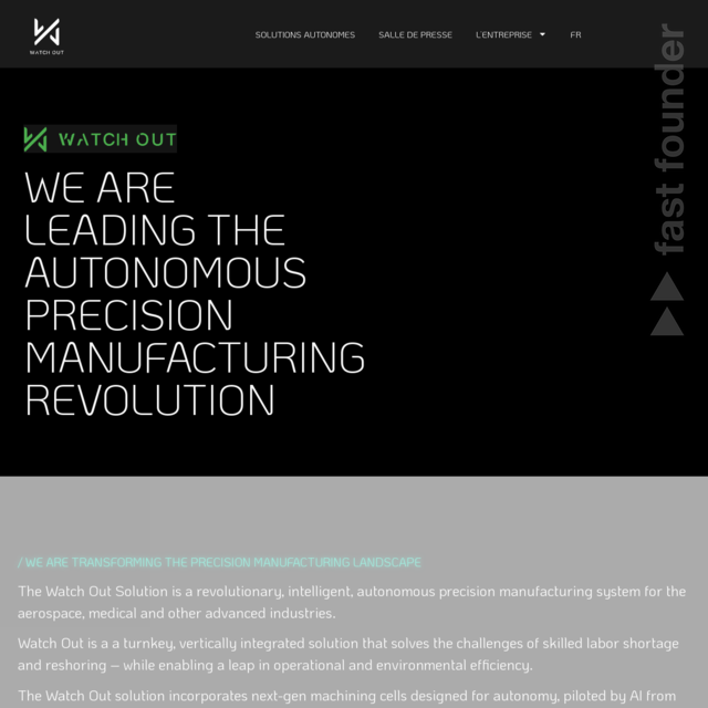 “The Watch Out Solution is a revolutionary, intelligent, autonomous precision manufacturing system for the aerospace, medical and other advanced industries.”