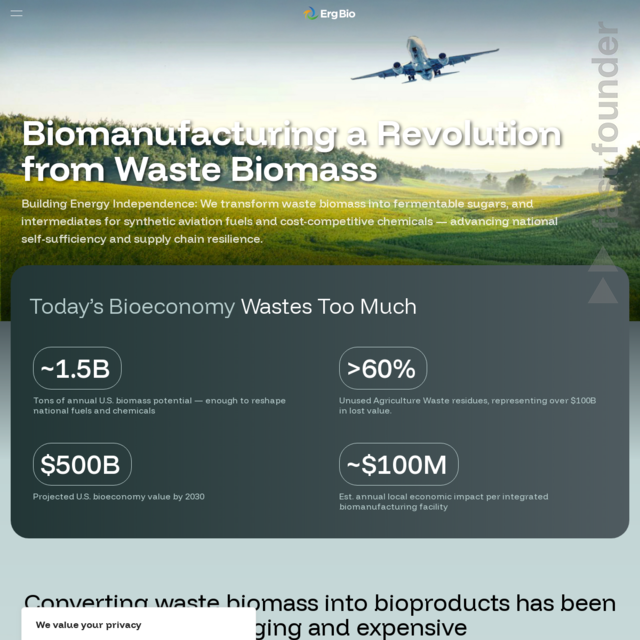 “Building Energy Independence: We transform waste biomass into fermentable sugars, and intermediates for synthetic aviation fuels and cost-competitive chemicals — advancing national self-sufficiency and supply chain resilience.”