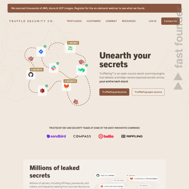 “Truffle Security is an open-source security software company that secures sensitive data by automatically detecting and remediating leaked keys and credentials.”