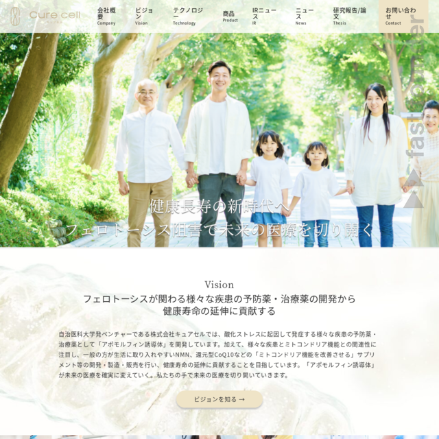 “Cure Cell Co., Ltd. develops apomorphine derivatives as preventive and therapeutic drugs for various diseases caused by oxidative stress, and develops, manufactures, and sells supplements that improve mitochondrial function such as NMN and reduced CoQ10.”