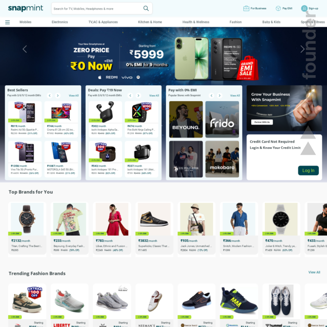 “Easy EMI Shopping Online without Credit Card from Snapmint. India's best payment option to shop on No Cost EMI without Credit Card using Debit Card or UPI.”