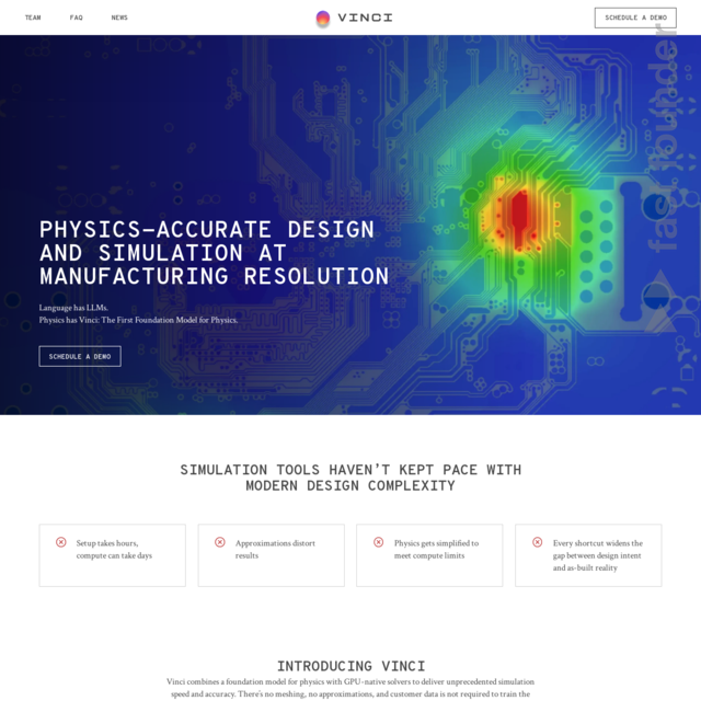 “Run full-resolution simulations in minutes. Vinci’s foundation model for physics unites AI acceleration with verified solvers for as-built accuracy.”