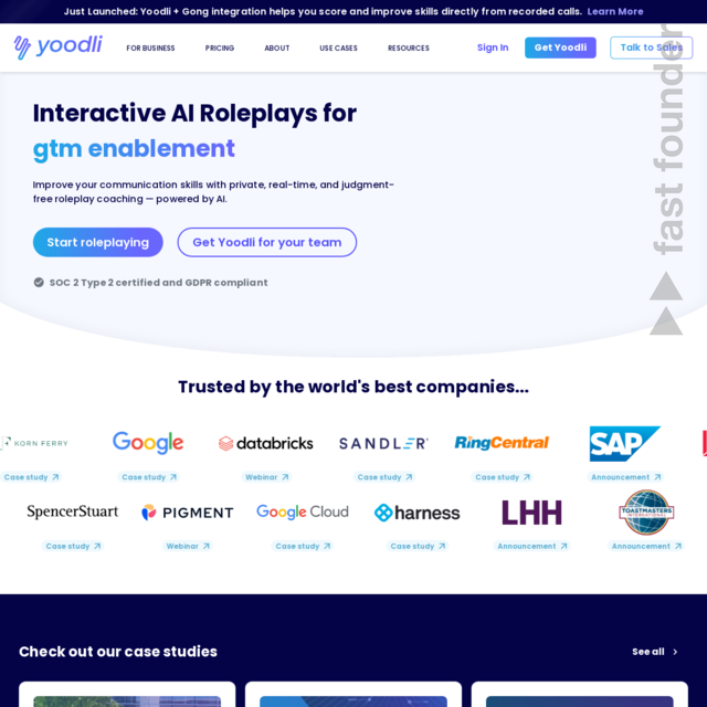 “Ace your next pitch, speech or interview with private, realtime coaching. Used by Google, Sandler Sales, RingCentral, Korn Ferry, and more.”