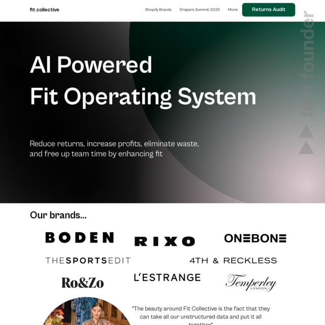 “Enterprise software helping fashion businesses reduce their fit returns - the largest cause of returns. Using deep AI machine learning and combined with Savile Row tailoring expertise, Fit Collective is the first software solution to fix fit pre-production. ”