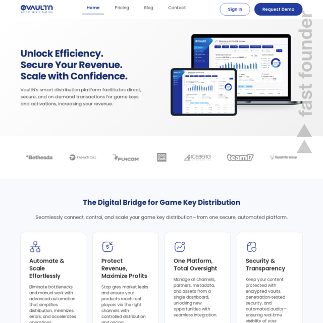 “VaultN's smart distribution platform enables automated self-service distribution of game keys, digital assets, and more. Unlock efficiency, secure revenue, and scale with confidence.”