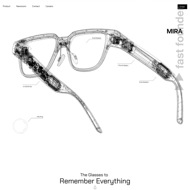 “Waveguide display. 12-hour battery life. Unlimited Recording/Memory. Only 39 Grams. Dual Display. Translates 60+ Languages. Charges in 40 Minutes. Automatic Wear Detection. Magnetic charging.”