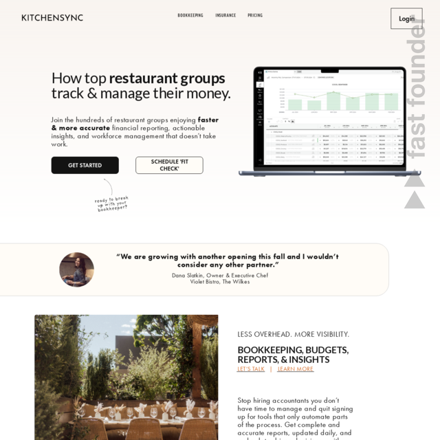“KitchenSync offers AI-driven bookkeeping and insights for independent restaurants, improving profitability and decision-making with real-time financial reports.”
