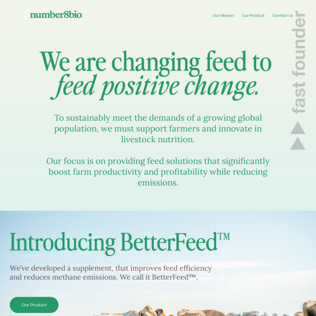 “Number 8 Bio is a scientist-led start-up in Sydney that makes scalable and affordable enteric methane mitigation feed additives for livestock. We have a unique approach to managing rumen energy flows and animal productivity when methane is decreased, and we aim to give farmers a healthy ROI when using the additives.”