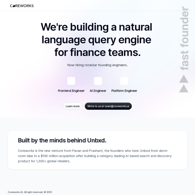 “We're building a natural language query engine for finance teams that lets users query accurate data and build financial reports and models. Now hiring rockstar engineers!”