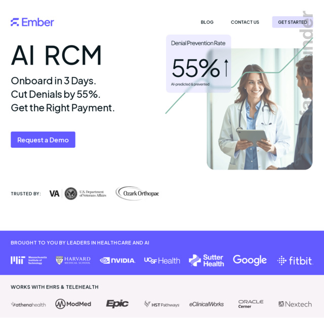 “AI RCM. Onboard in 3 days or less. Reduce denials by 55%.”