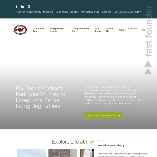 “Find your forever home at Fox Run at Orchard Park. Discover a seamless transition through all stages of life with peace of mind and a supportive environment.”