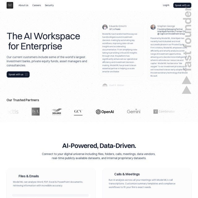 “Automate financial grunt work with precision. Model ML helps top finance firms move faster with AI that understands deals, models, and pitch decks.”