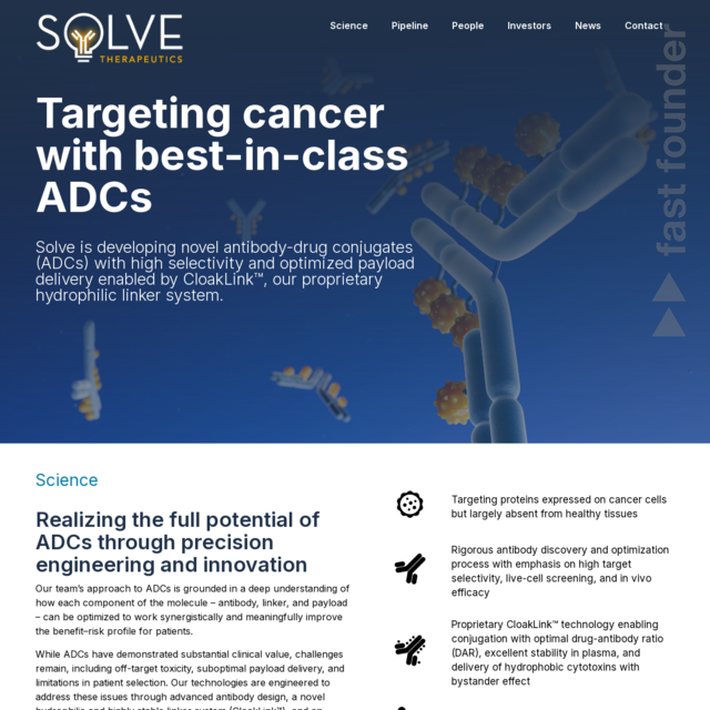 “Targeting cancer with best-in-class ADCs Solve is developing novel antibody-drug conjugates (ADCs) with high selectivity and optimized payload delivery enabled by CloakLink™, our proprietary hydrophilic linker system. Science Realizing the full potential of ADCs through precision engineering and innovation Our team’s approach to ADCs is grounded in a deep understanding of how each component of”