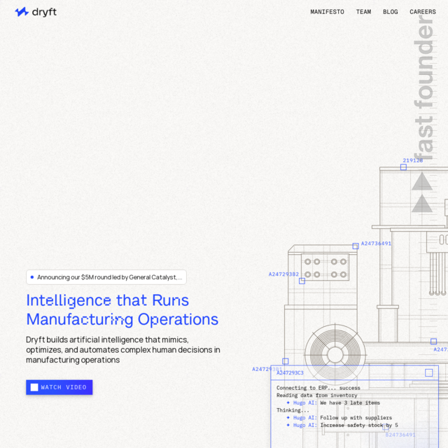 “Intelligence that Runs Manufacturing Operations. Dryft builds artificial intelligence that mimics, optimizes, and automates complex human decisions in manufacturing operations.”