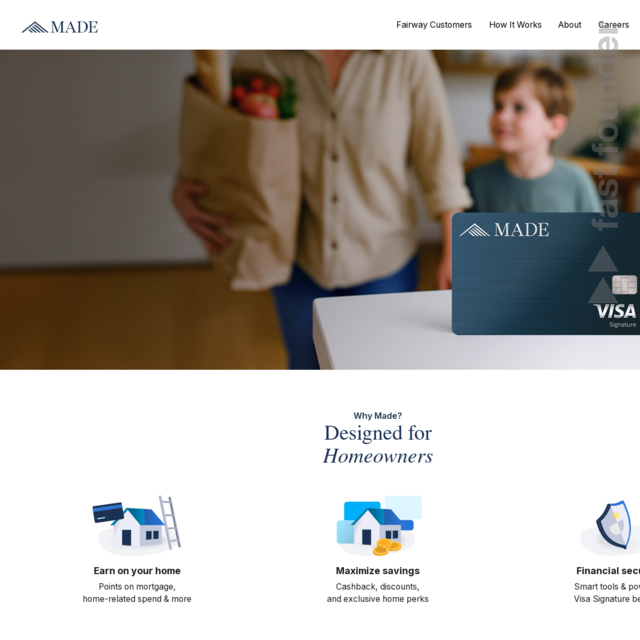 “The credit card made for homeowners. With Made Card, earn rewards on mortgage payments, home expenses, and more.”