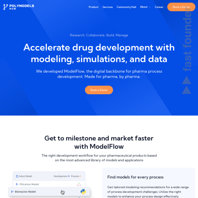 “Accelerate drug development with modeling, simulations, and data. We developed ModelFlow, the digital backbone for pharma process development. Made for pharma, by pharma.”