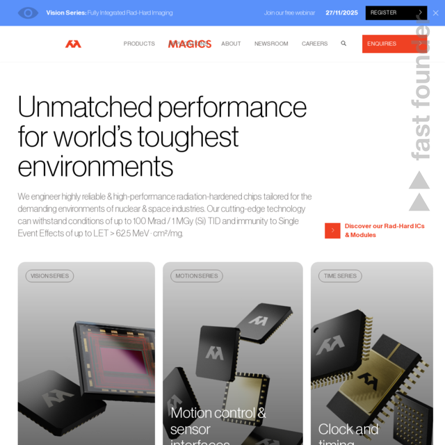 “Magics offers the world’s only semiconductor chips that withstand 1,000x more radiation than any other commercial device. Our rad-hard ICs and modules provide unmatched reliability and performance for nuclear, space, and other extreme environments.”