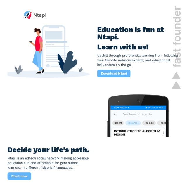 “Ntapi is an edtech social network making accessible education fun and affordable for Africans.”