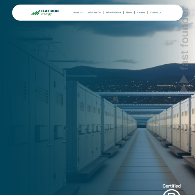 “Flatiron develops clean energy storage solutions, supporting the transition to renewables and reducing emissions that lead to climate change. Certified B Corp.”