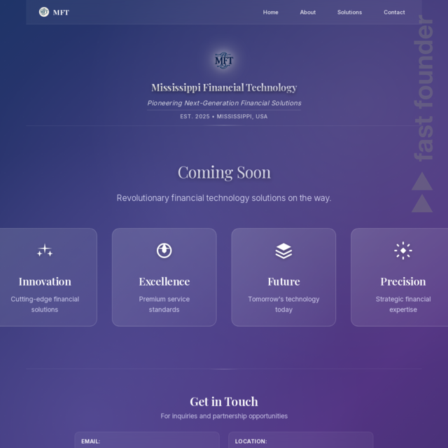 “Mississippi Financial Technology - Revolutionary financial technology solutions coming soon. Innovation, excellence, and precision in fintech.”