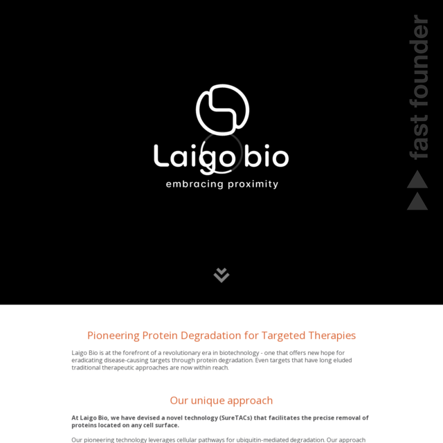 “Pioneering Protein Degradation for Targeted Therapies. Laigo Bio is at the forefront of a revolutionary era in biotechnology -one that offers new hope for eradicating disease-causing targets through protein degradation. Even targets that have long eluded traditional therapeutic approaches are now within our reach._en”