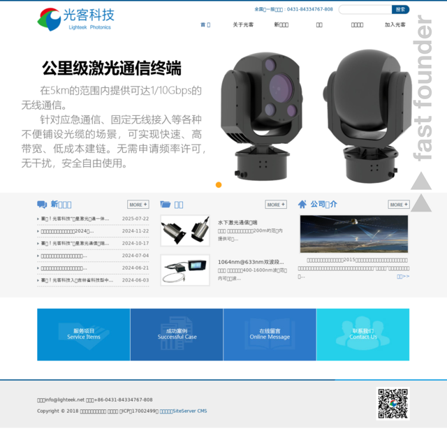 “The company's wireless optical communication products are widely used in aviation, aerospace, industrial automation, high-precision measurement and automation and other fields.The company has the ability to design, process realization and test and verification of wireless optical communication equipment.”