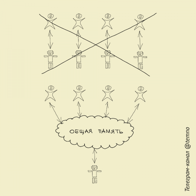 2. Командный ИИ должен стать «командным мозгом» 🧠🧠🧠 А для этого он должен уметь накапливать опыт от всех членов команды — чтобы каждый член команды смог потом этот опыт использовать! Тогда команды начнут работать гораздо быстрее и эффективнее 🚀