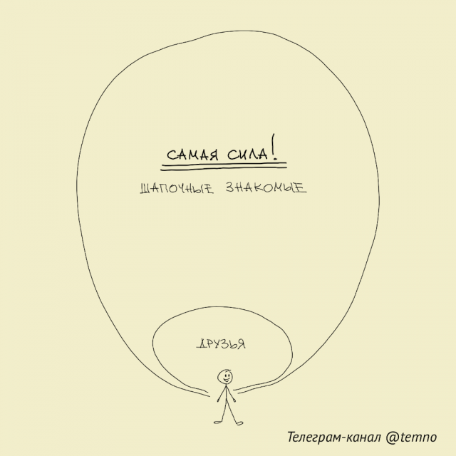 1. Многие проблемы можно быстро решить «по знакомству» 🤝 А самое прикольное — что самыми эффективными в этом оказываются не друзья, а шапочные знакомые 😱 Ведь только через такие «слабые связи» можно выйти в новый для себя круг общения.