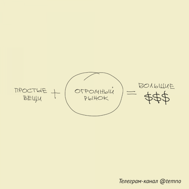 1. Большие деньги часто можно заработать на очень простых вещах 😉 Правда, если только найти рынок — где даже таких простых вещей пока ещё хватает с головой. Но такой рынок есть 🎯