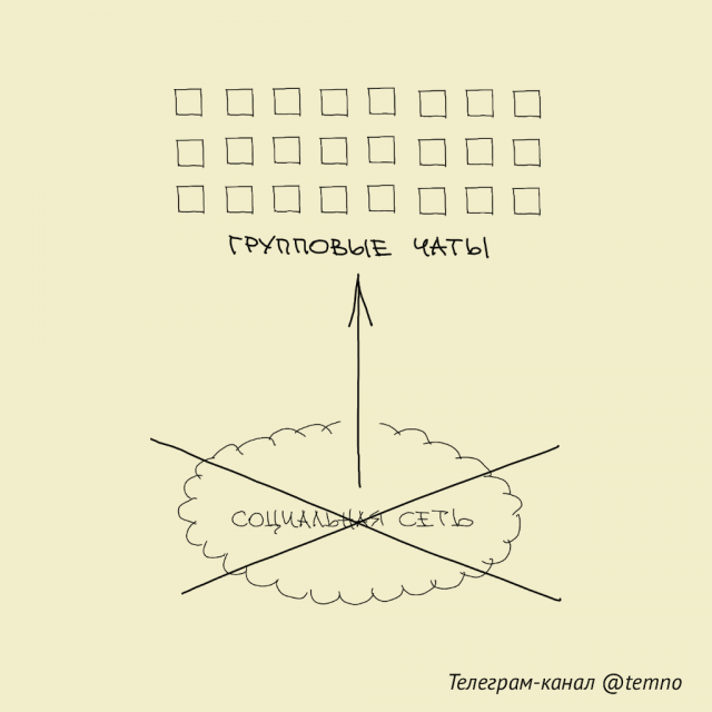 2. Однако это не означает, что молодёжь перестала общаться в интернете 😉 Просто акцент их активности начал смещаться в групповые чаты — где они общаются исключительно со своими знакомыми. Кстати, даже в среднем один человек сейчас состоит почти в 100 групповых чатах 😮