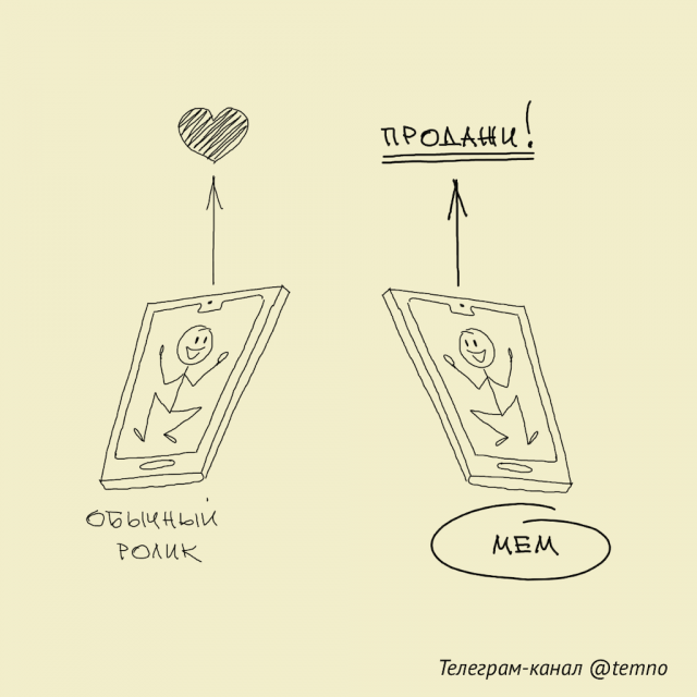 2. Тогда тебе нужно понять разницу между обычным «прикольным роликом» и «мемом». Потому что обычный ролик — он чисто про «приколоться» без особого смысла. А мем передаёт маркетинговое сообщение — хотя и тоже в прикольной форме 🥳