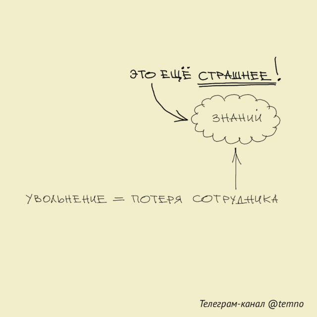 2. Одна из таких проблем — «утечка корпоративных знаний», которые утекают с каждым увольняющимся сотрудником. Ведь он уже знает о своей работе всё. А пока новый принятый на его место сотрудник это «всё» узнает и начнёт работать настолько же эффективно — пройдёт не меньше полугода ☹️ А компания всё это время будет терять деньги и клиентов.